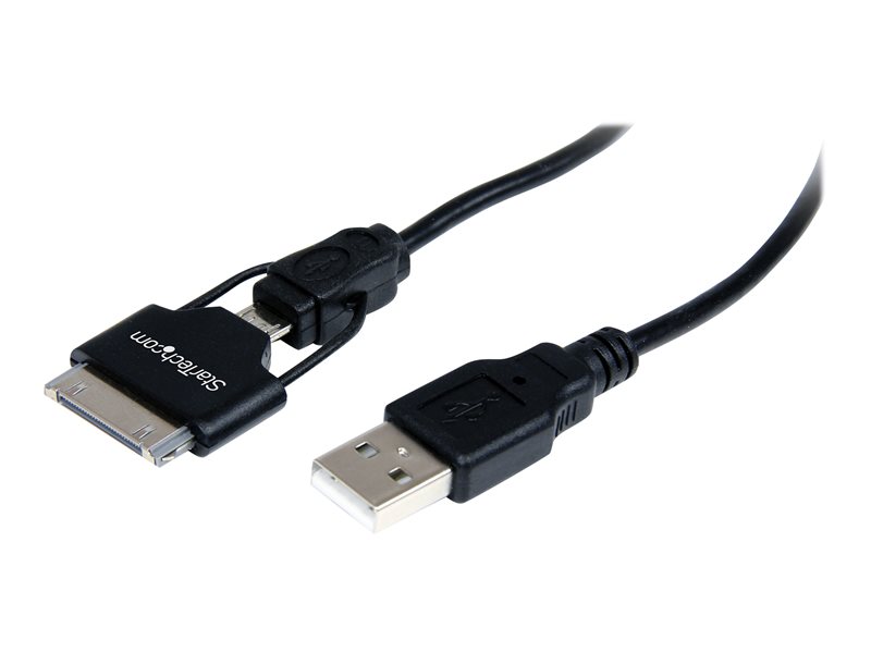 | Description du produit | StarTech.com Câble connecteur Apple Dock 30 broches ou Micro USB vers USB 60 cm - Cordon de charge / sync pour iPad iPhone iPod - Blanc - câble de chargement / de données - 65 cm | |