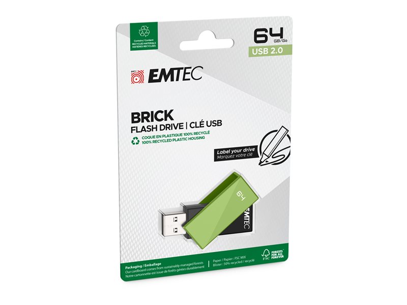 EMTEC C350 Brick - Clé USB - 64 Go - USB 2.0 - vert