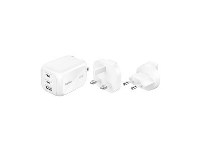 | Description du produit | Belkin BoostCharge Pro adaptateur secteur - GaN - 2 x USB-C, USB - 100 Watt - avec kit d'adaptateur de voyage | |