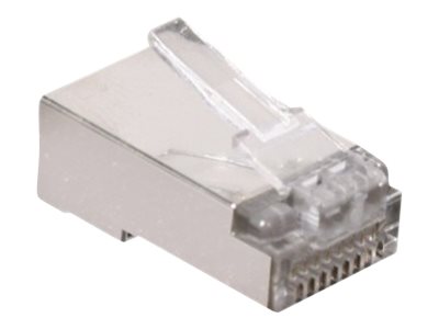 Plug à sertir RJ45 blindé pour la téléphonie| |- contacts dorés : 3 µm|- conditionnement : sachet de 10 pcs|- compatible réseau informatique jusqu'à 10 MHz|