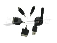 Câble rétractable USB + 4 connecteurs : iPad/iPhone ancienne generation / Galaxy Tab ancienne generation / Micro USB / Mini USB