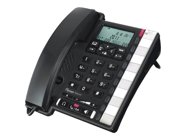Depaepe Premium 300 - Téléphone filaire avec ID d'appelant - mains-libres - écoute amplifiée - écran alphanumérique 3 lignes - répertoire 100 numéros - alarme - noir