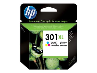 HP 301XL - 6 ml - à rendement élevé - couleur (cyan, magenta, jaune) - original - cartouche d'encre - pour HP DeskJet 1000, 1010, 1050 AiO, 1050A AiO, 1510 AiO, 2000, 2050 AiO, 2050A AiO, 2510 AiO, 2540 AiO, 3000, 3050 AiO, 3050A eAiO, 3510 eAiO series, H