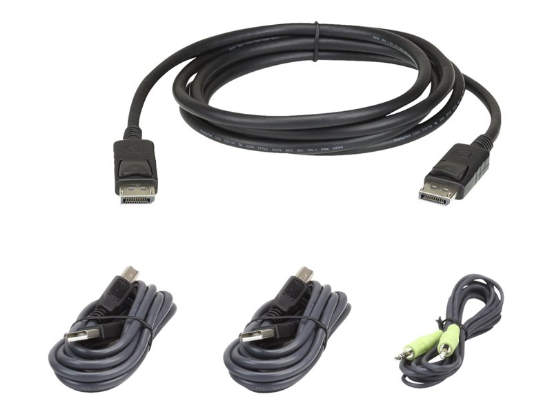 Cordons individuels de raccordement d'unité centrale sur un commutateur KVM ATEN|Compatible avec switch KVM : CS11xxDP DisplayPort simple écran|Connecteur d+ordinateur : DisplayPort, 2x USB type A et