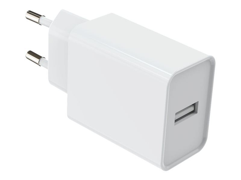 Chargeur secteur USB 12W - 1 port USB (USB-A) : 5V 2.4A (12W) - Blanc - Compatible smartphones et tablettes (câble USB non fourni)