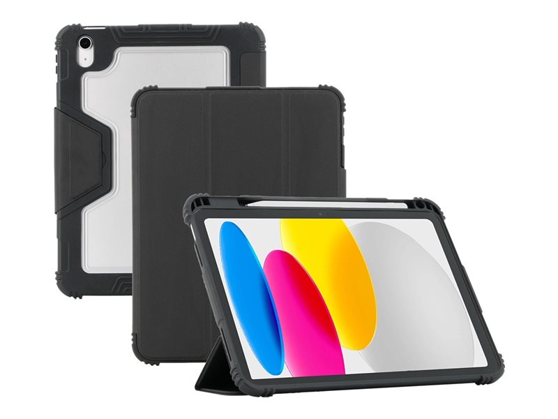 Caractéristiques | Semi-rigide, Système de cellules d'air, arêtes surélevées, Volet de protection, sleep/wake function, viewing/keyboard mode, magnetic lock |
