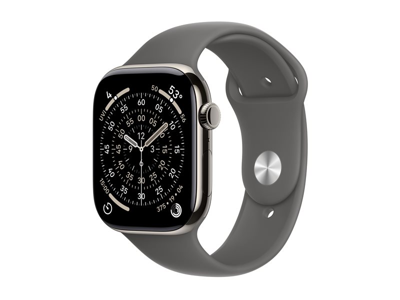 Description du produit | Apple Watch Series 11 (GPS + Cellular) - titanium naturel - montre intelligente avec bande sport - gris acier - 64 Go | |